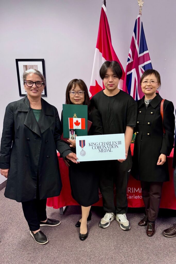 As an acknowledging the contributions she have made over many years to the Kanata community, to Ottawa, she won King Charles III Medal, a national award that recognizes those made huge contributions